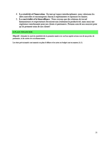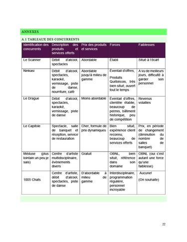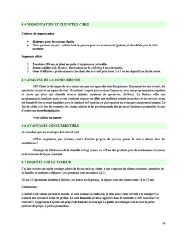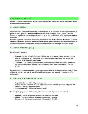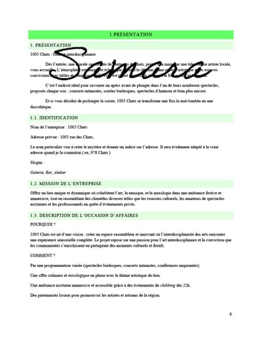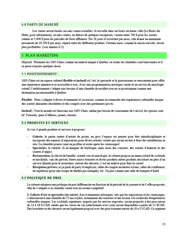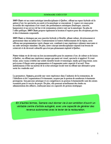 Plan d'affaire fictif pour un cabaret multidisciplinaire.
