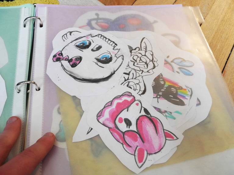 Flash ce sont d'un côté mes éclairs d'inspiration que je note dans mes cahiers, des feuilles perdues et dans mon application Notes. Mais c'est auss, dans le vernaculaire des tatoueurs. Un type de tatouage prêt à être acheter.